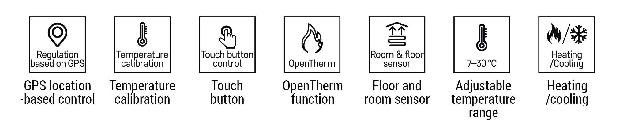 | type of control | programmable electronic room thermostat, option to control via mobile phone (iOS, Android) |