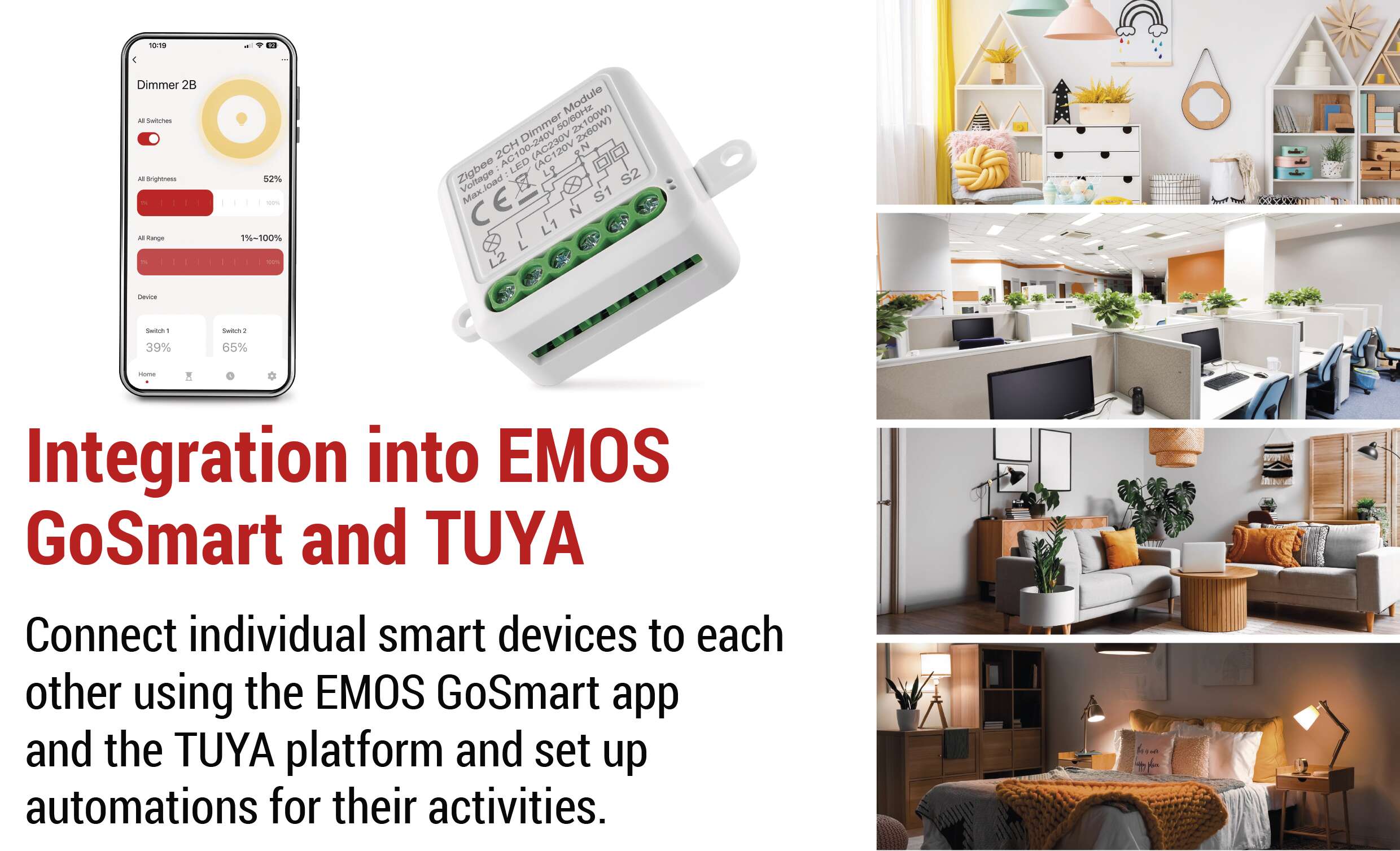 Connect the module to the ZigBee gateway and pair it with the EMOS GoSmart mobile app, available for OS Android and iOS. Because the modules are permanently powered, they also act as a extender of your Zigbee signal, allowing you to manage an ever-increasing number of ZigBee devices on a single network.
