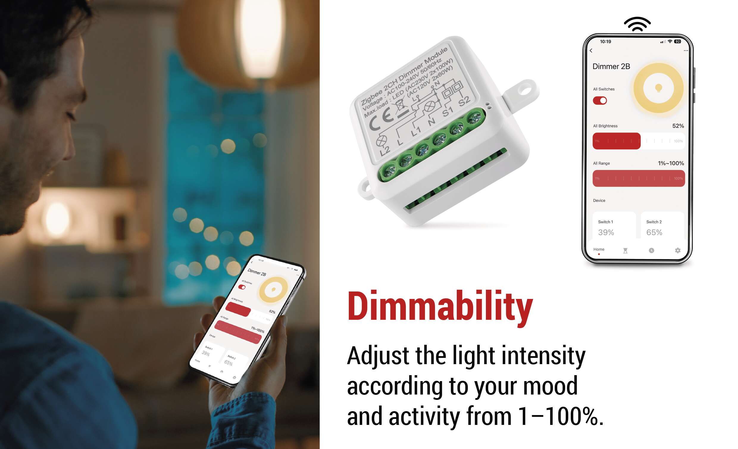 The dimmer module can be selected to control one or two separate channels. Thus, you can choose the appropriate type according to the switch you want to convert to smart(single switch or double switch).