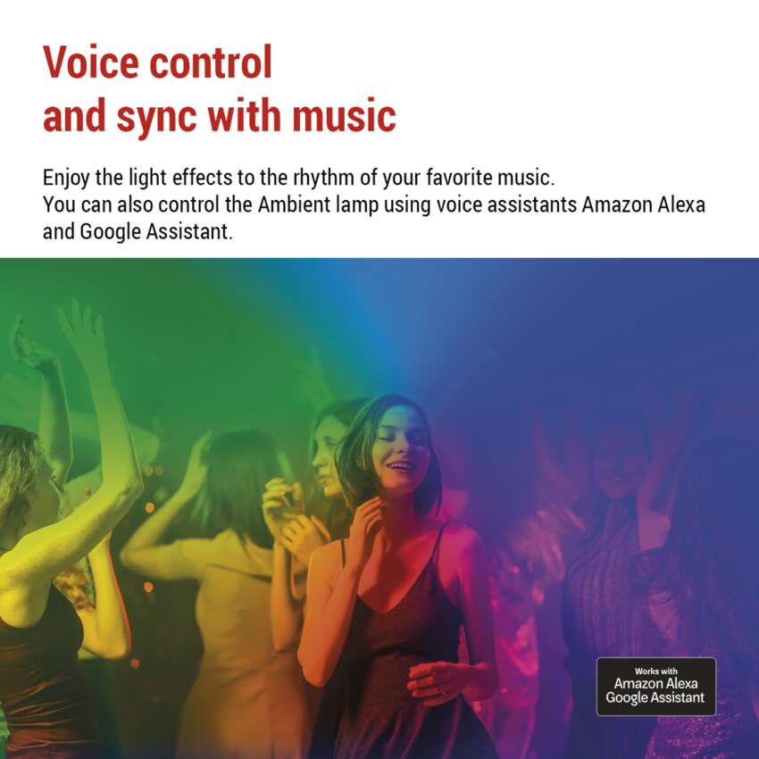 You can control the lamp not only with the mobile app, but also with voice assistants Amazon Alexa and Google Assistant or manual control directly on the lamp.