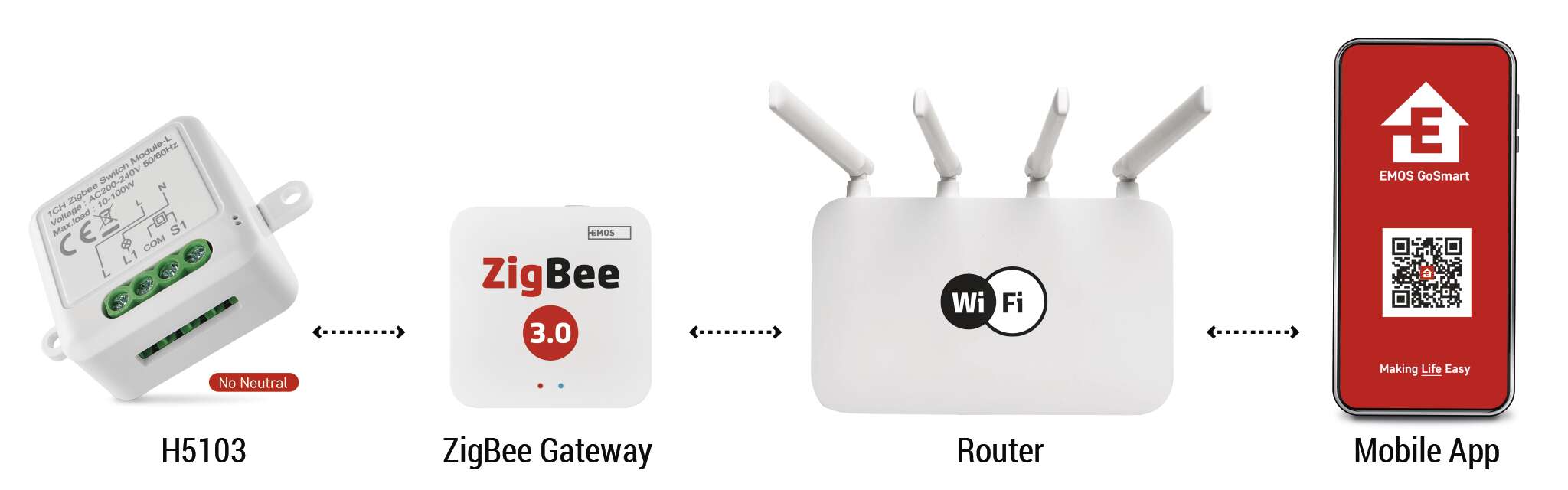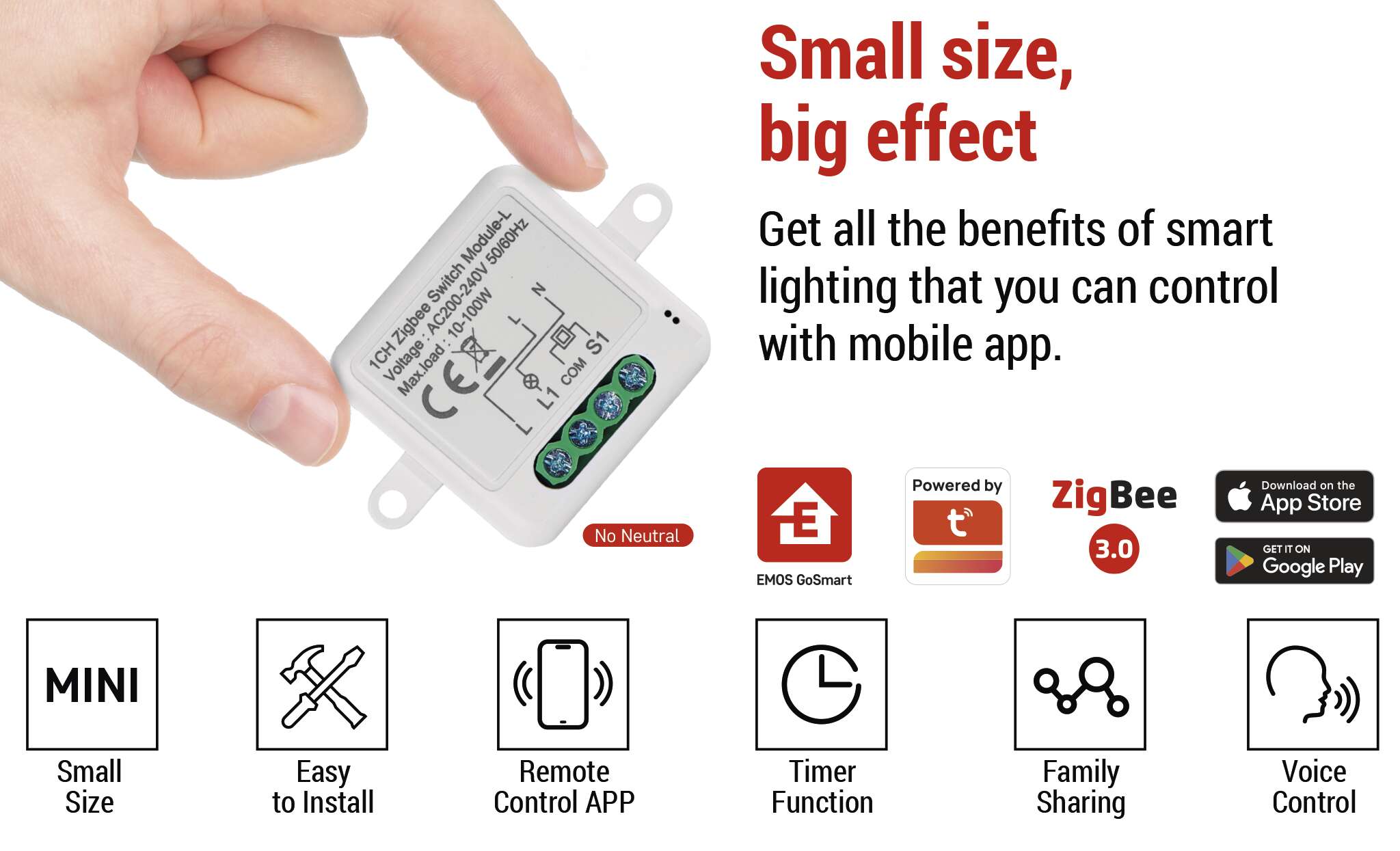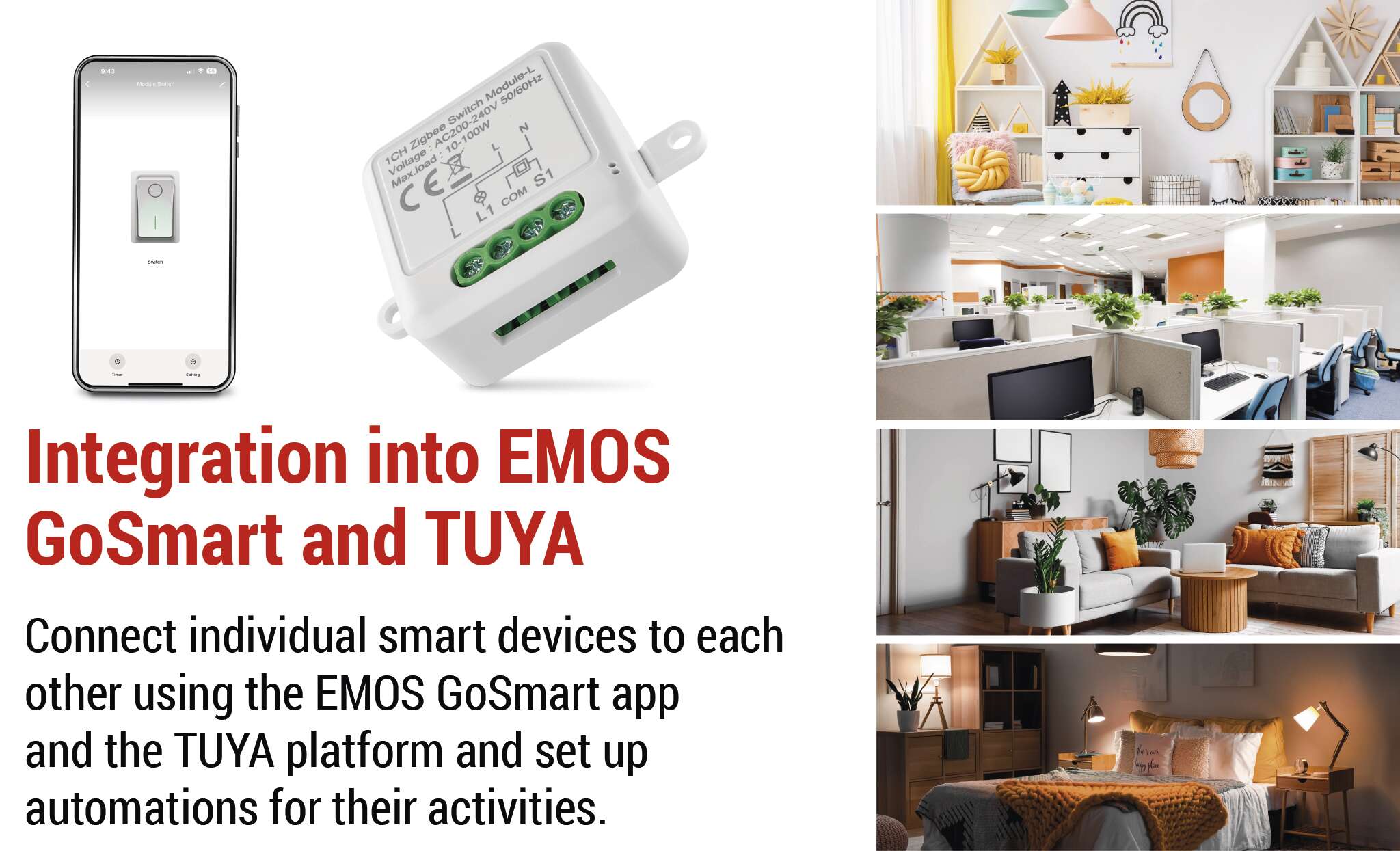 Connect the Module to a ZigBee gateway and pair it with the EMOS GoSmart mobile app, available for Android and iOS. Because the modules are permanently powered, they also act as a extender of your Zigbee signal, allowing you to manage an increasingly larger number of ZigBee devices on a single network.