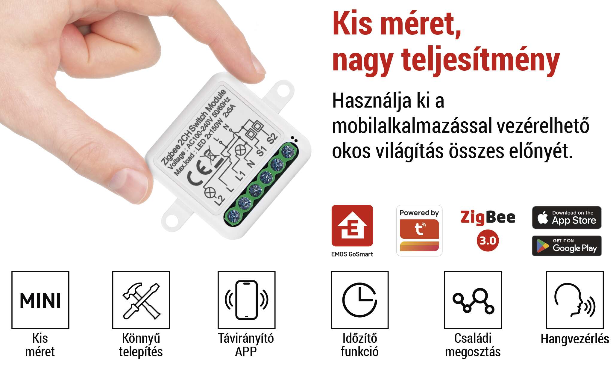 Vezérelje a modult ZigBee átjárón keresztül, és párosítsa az EMOS GoSmart mobilalkalmazással, amely Android és iOS rendszereken is elérhető. Az állandó tápellátásnak köszönhetően a modul ZigBee jelerősítőként is működik, így hozzájárul a hálózat hatótávolságának bővítéséhez, és lehetővé teszi egyre több ZigBee eszköz stabil vezérlését egyetlen hálózaton belül.