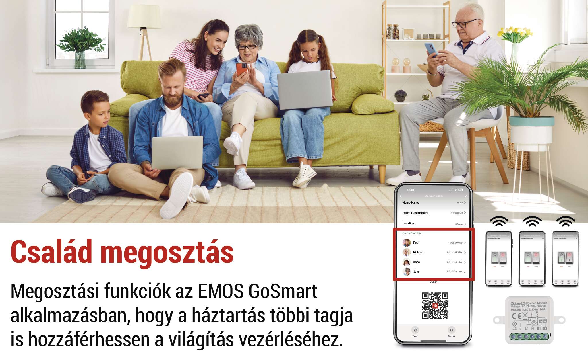 - Kiegészítő funkciók: jelenetek beállítása, eszközök csoportosítása, időzítés és családi hozzáférés