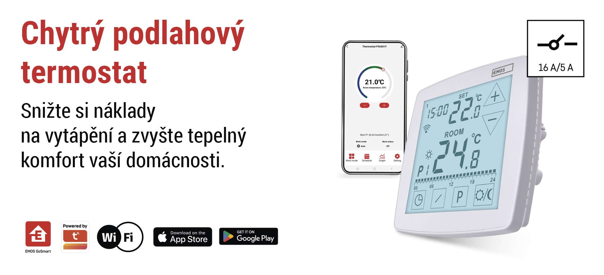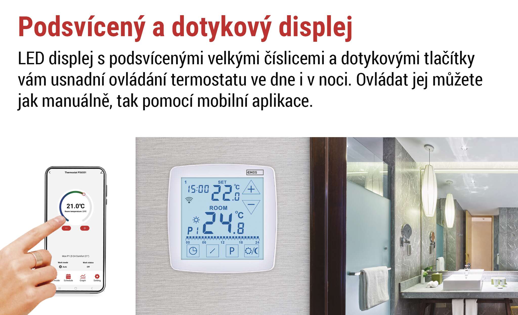 Chytrý podlahový termostat P56S01F z řady EMOS GoSmart vám pomůže udržet ideální teplotu, šetřit energii a zároveň si užívat maximální komfort. Díky pokročilé technologii OpenTherm automaticky optimalizuje vytápění i chlazení podle aktuálních podmínek, čímž zajišťuje efektivní provoz bez zbytečných ztrát. Přidejte k tomu chytré funkce – regulaci podle GPS polohy, plánování teplotních scénářů, ovládání přes aplikaci odkudkoli a podporu hlasových asistentů Google Assistant a Amazon Alexa – a získáte skutečně neocenitelného pomocníka ve vaší domácnosti. Moderní design, vytvořený exkluzivně pro společnost EMOS, pak z termostatu dělá nejen praktický, ale i stylový doplněk každého interiéru.