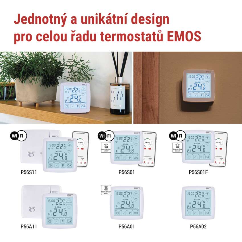 Objevte naši novou řadu termostatů – od klasických po chytré, s podlahovým čidlem nebo vestavěné, navržené v exkluzivním designu pouze pro společnost EMOS.