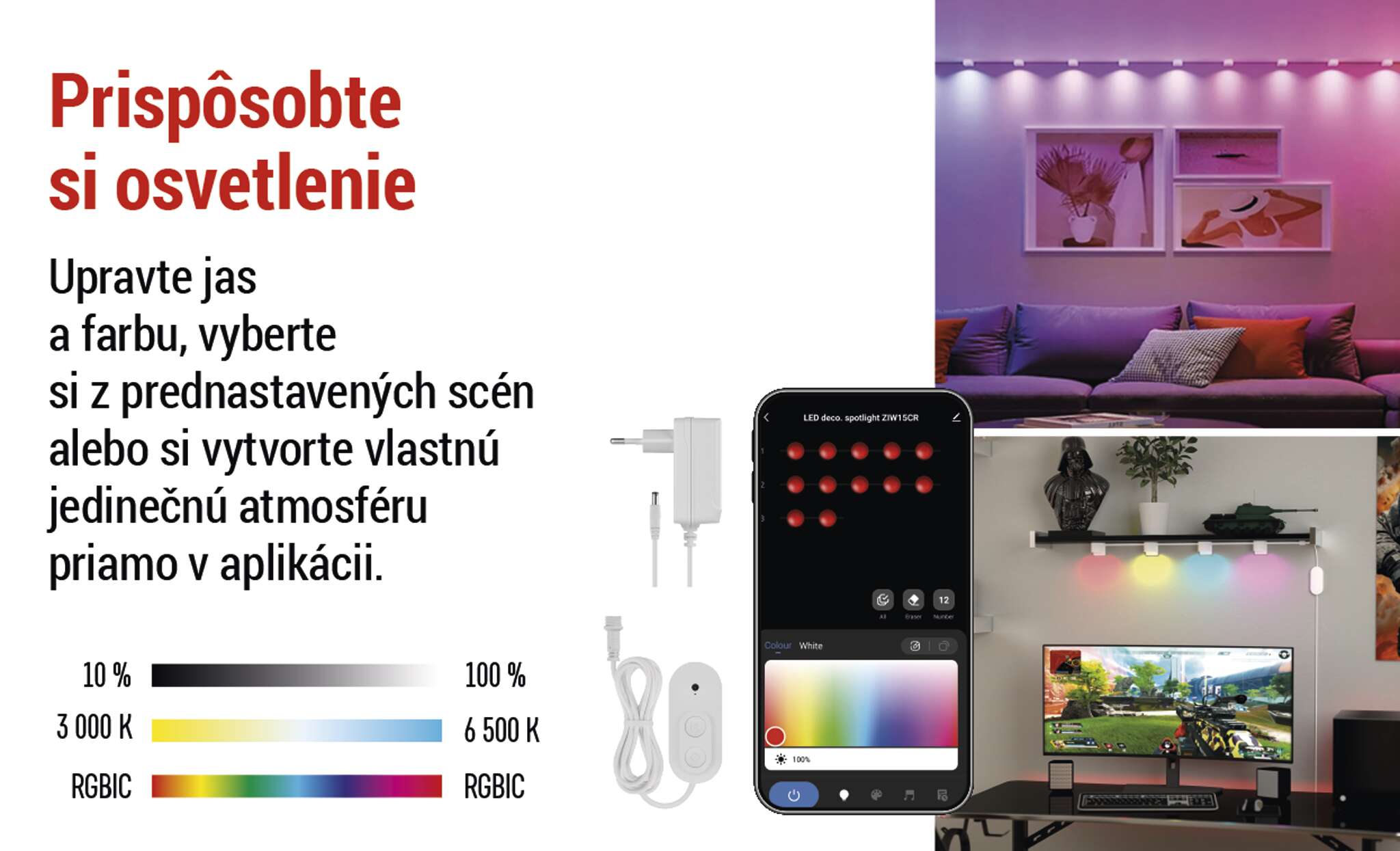 Moderné SMART LED bodové svetlá vám umožnia prispôsobiť farebnosť, jas aj režimy presne podľa vašich potrieb – či už chcete vytvoriť relaxačnú zónu, kreatívne štúdio alebo inteligentné osvetlenie pre každodenné pohodlie.