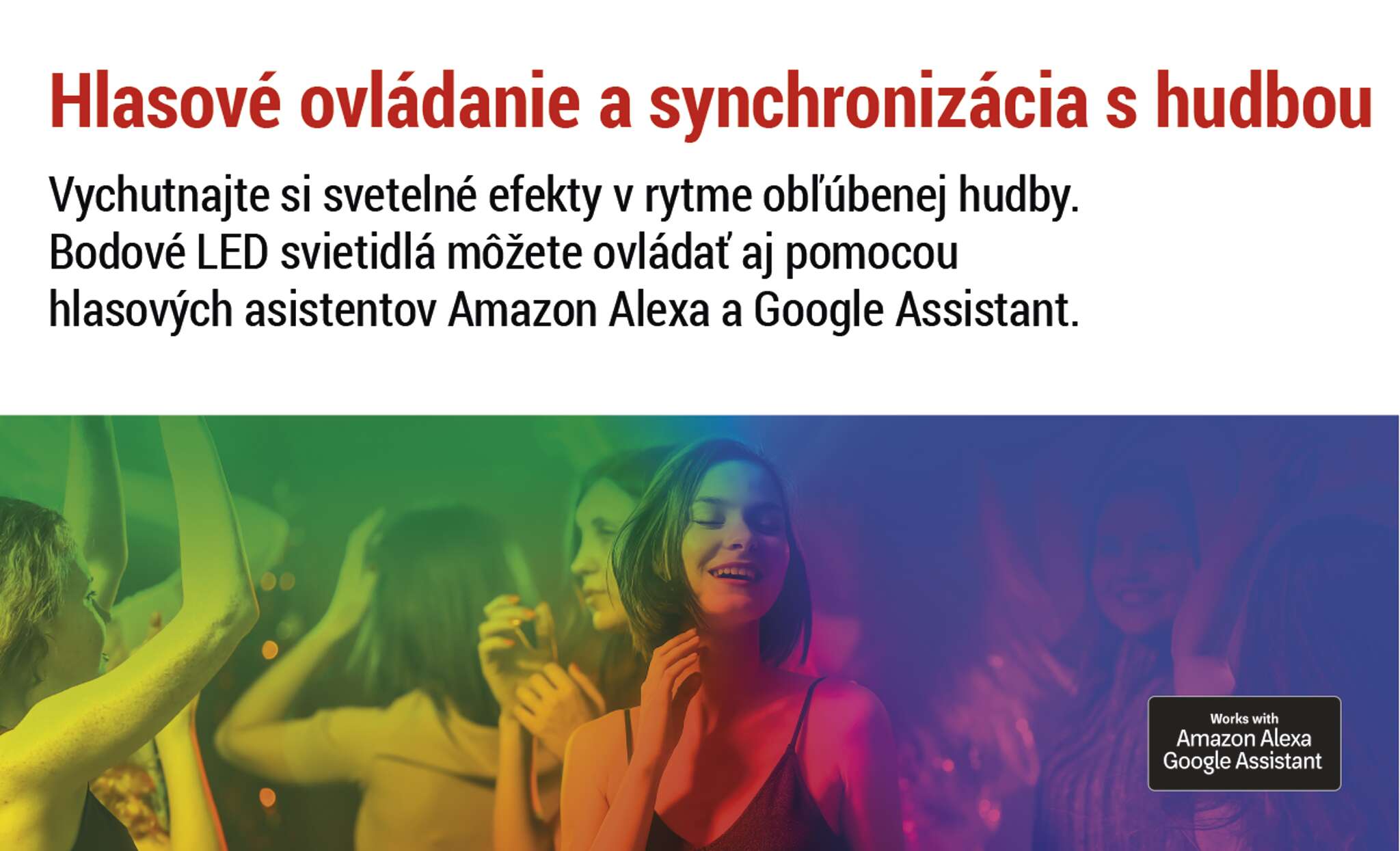 Svetlo môžete ovládať nielen pomocou mobilnej aplikácie, ale aj pomocou hlasových asistentov Amazon Alexa a Google Assistant alebo pomocou ovládača na 2 m napájacom kábli.