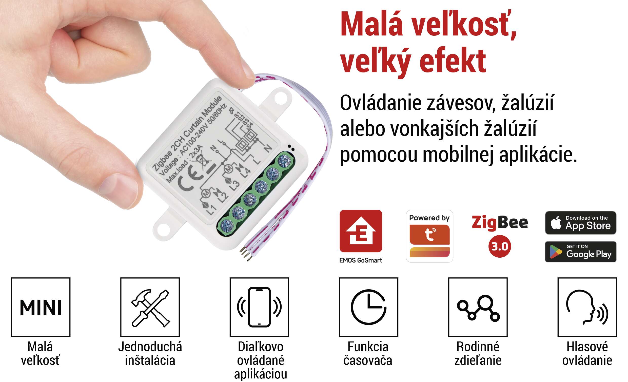 Či už ste doma alebo na cestách, ovládajte svoje závesy, rolety alebo vonkajšie žalúzie pomocou smart motorického modulu, ktorý pripojíte pomocou protokolu ZigBee.