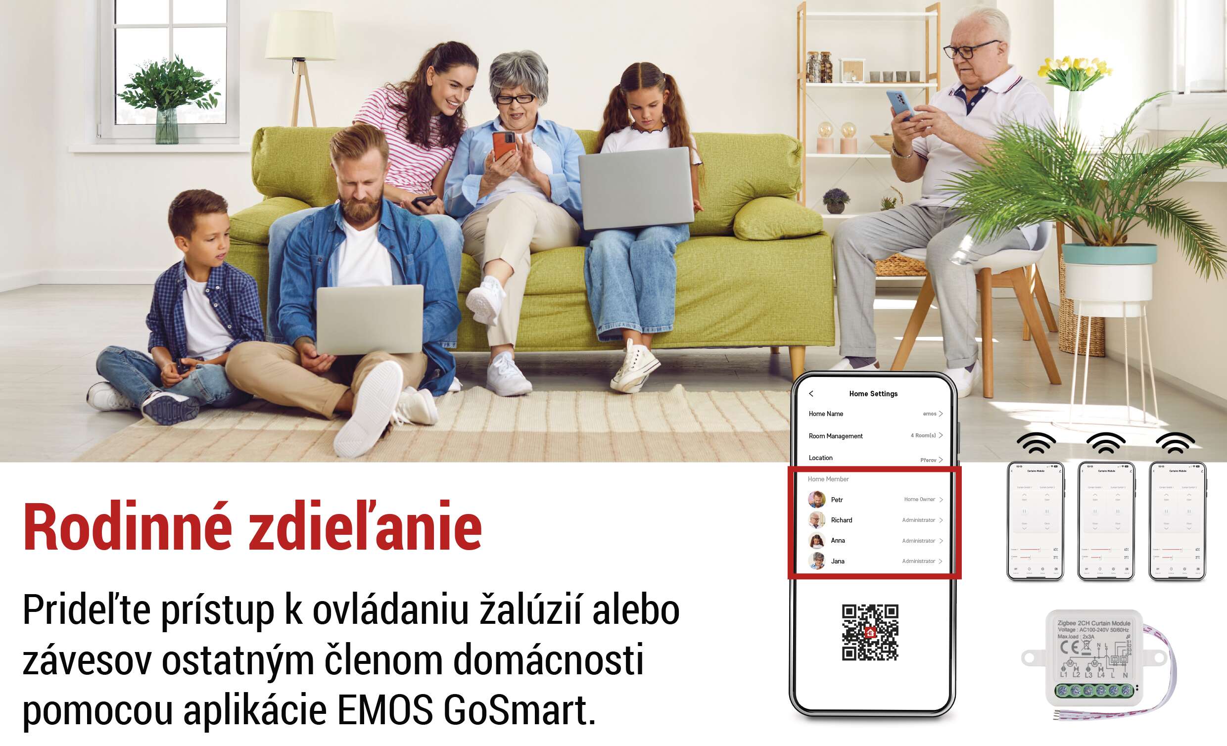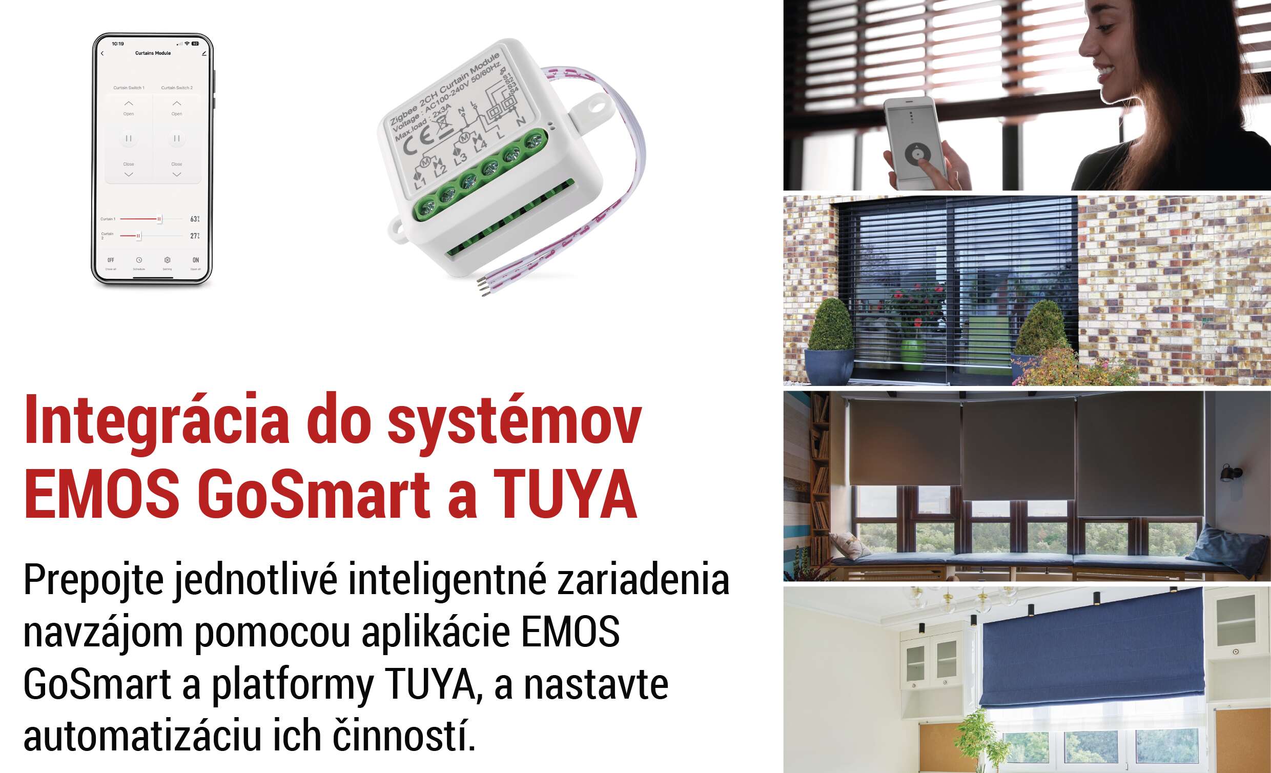 Inteligentný modul možno pripojiť k ďalším zariadeniam v domácnosti (hodiny, svetlá, dverové, okenné a vykurovacie senzory). Po spárovaní s mobilnou aplikáciou EMOS GoSmart môžete automatizovať, vytvárať scenáre a plánovať časy pre jednotlivé spotrebiče. Napríklad naplánovať čas budenia vyťahovaním žalúzií alebo automaticky zatemniť okná vo vopred naplánovanom čase počas vašej neprítomnosti. Vytvorte si inteligentný domov, ktorý sa prispôsobí vašim potrebám.