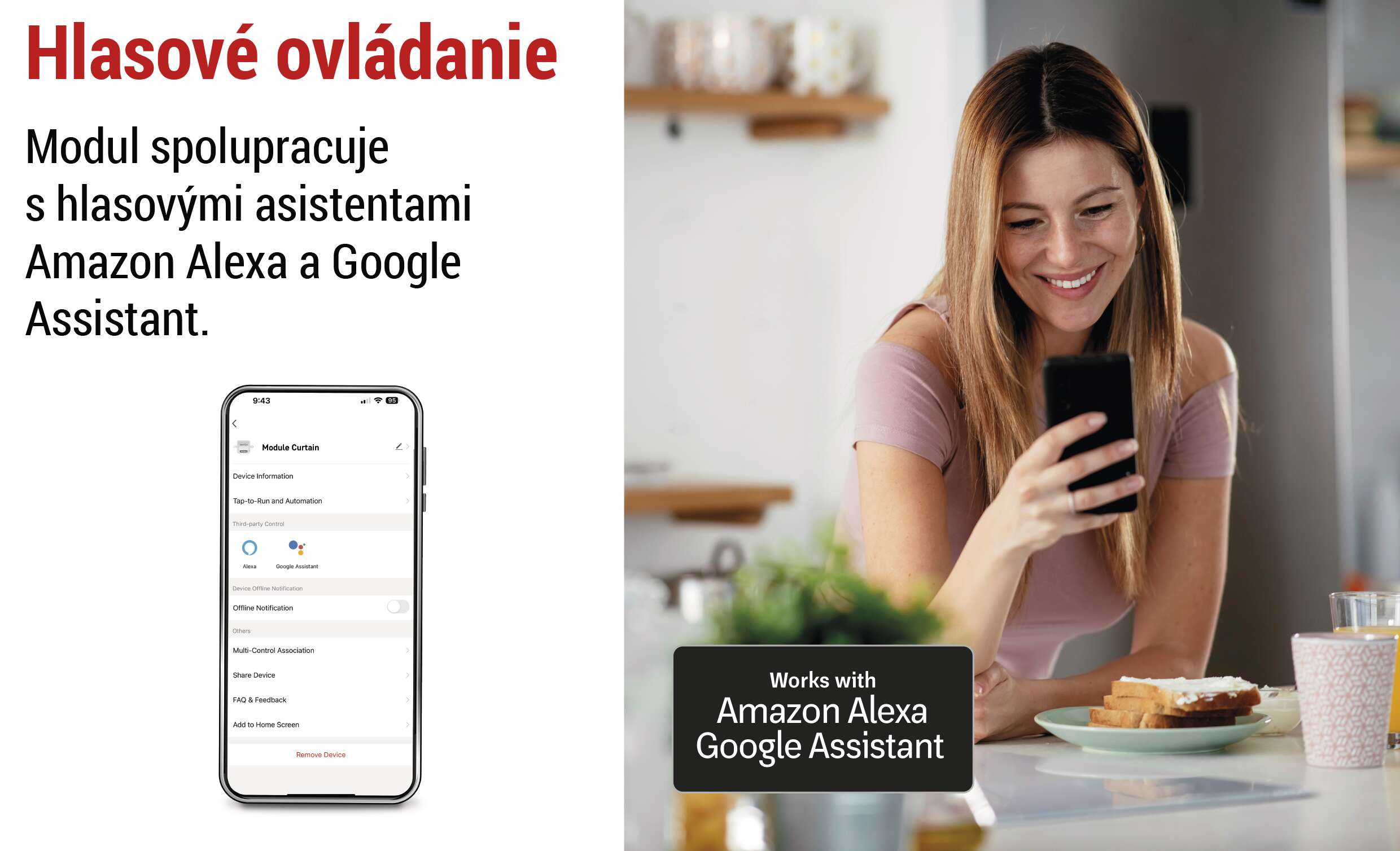 - Kompatibilita s hlasovými asistentmi Google Assistant a Amazon Alexa