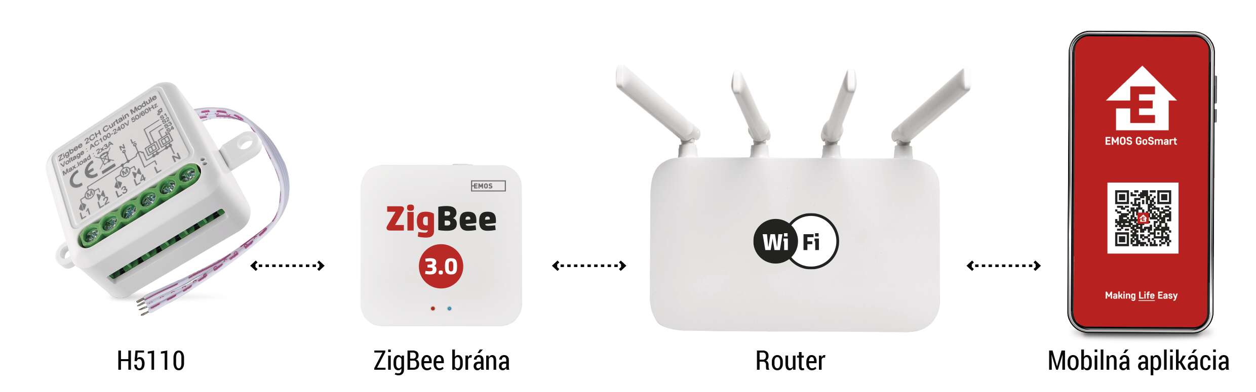 Pripojte modul k bráne ZigBee a spárujte ho s mobilnou aplikáciou EMOS GoSmart, ktorá je k dispozícii pre OS Android a iOS. Keďže moduly sú trvalo napájané, fungujú aj ako rozšírenie vášho signálu Zigbee, čo vám umožní spravovať stále väčší počet zariadení ZigBee v jednej sieti.