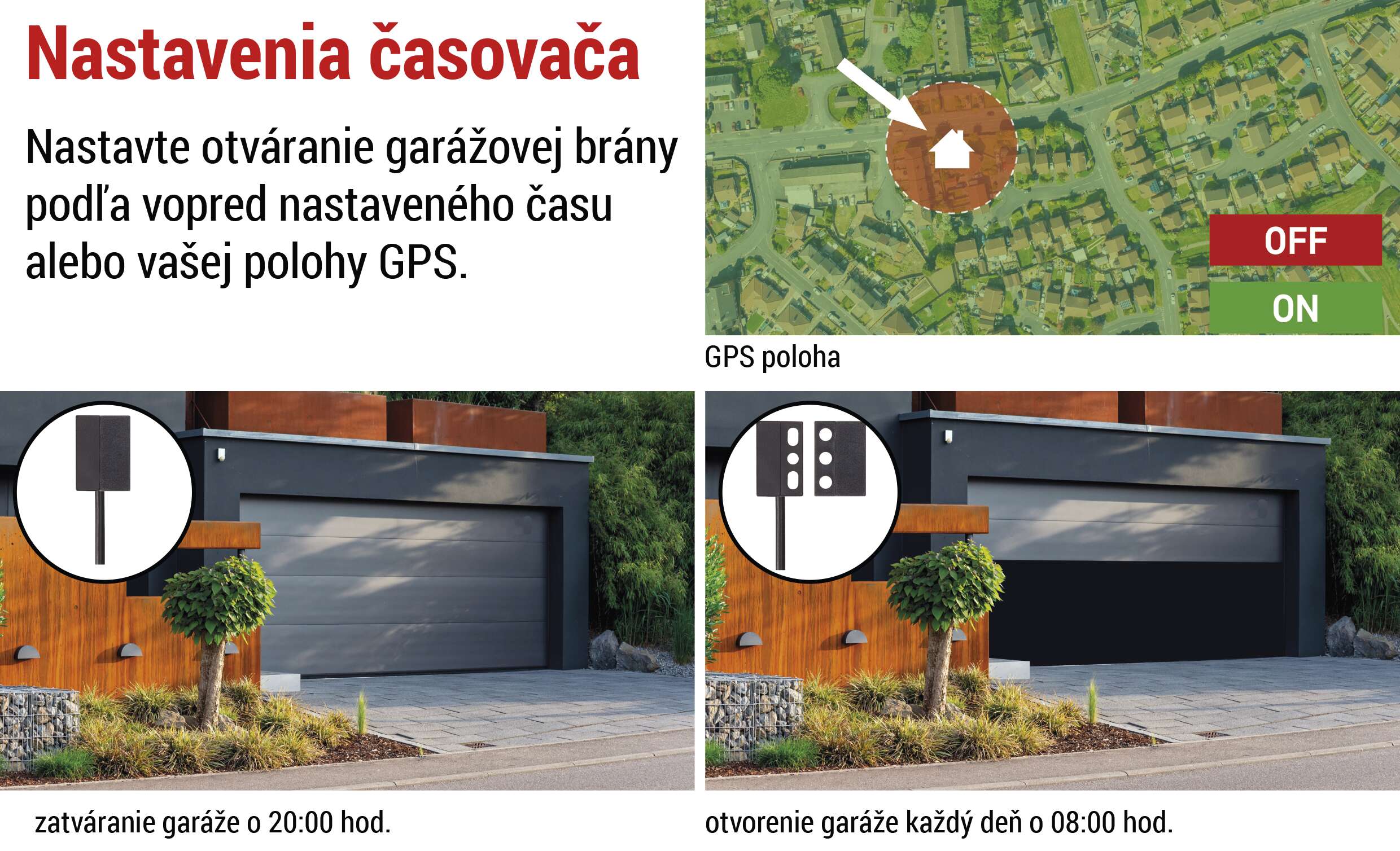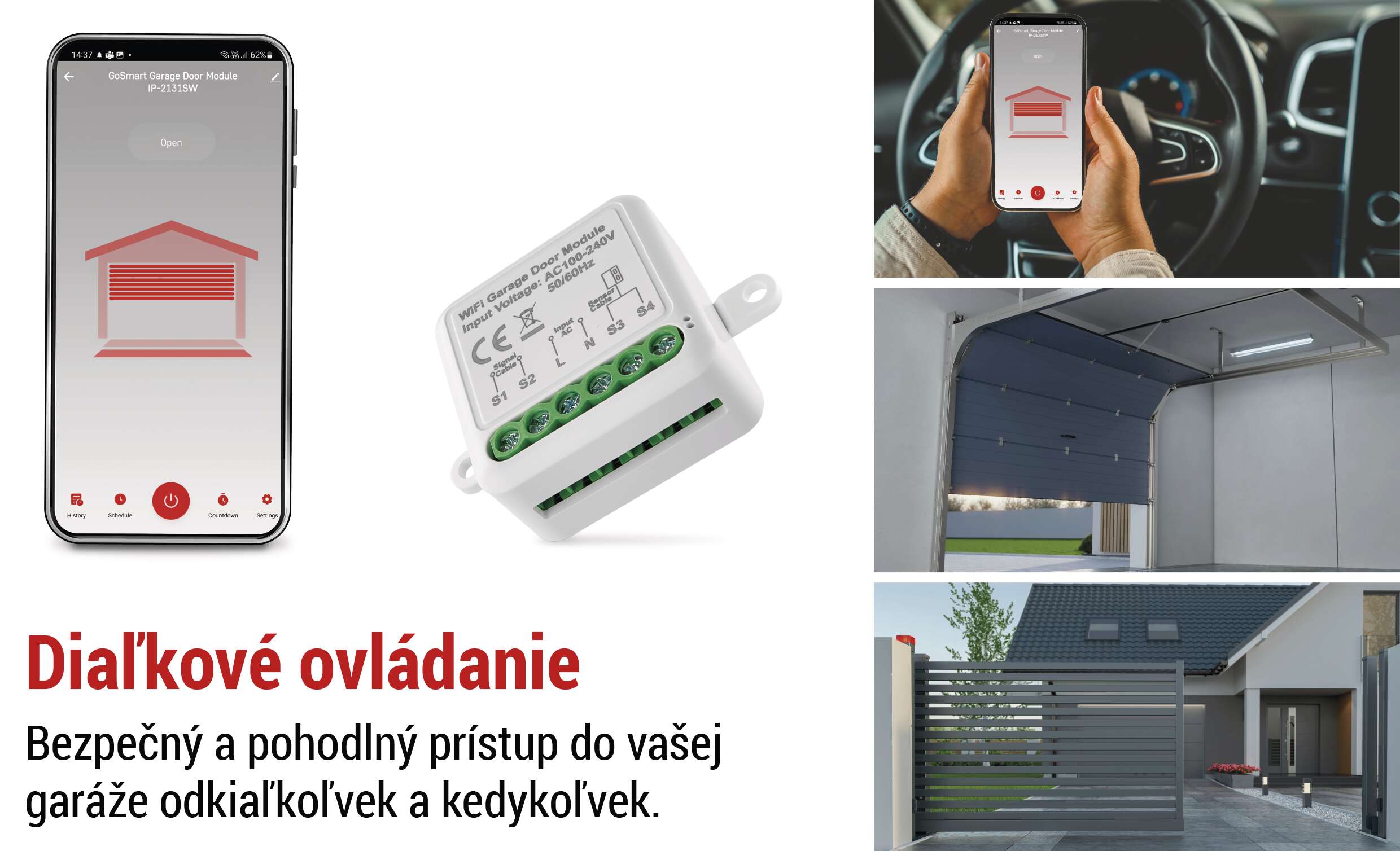 - Diaľkové ovládanie otvárania/zatvárania garážových dverí z akéhokoľvek miesta