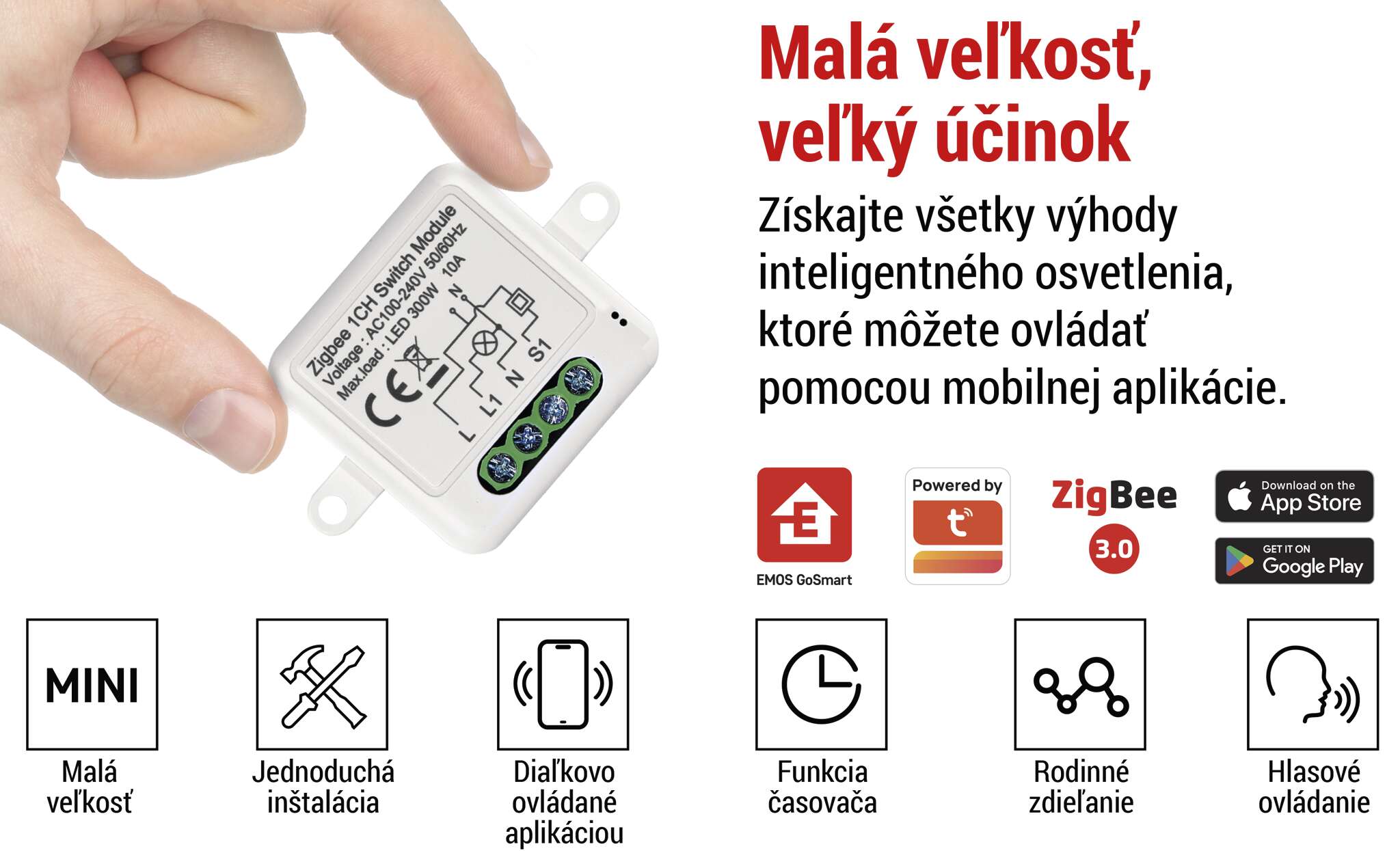 Pripojte modul k bráne ZigBee a spárujte ho s mobilnou aplikáciou EMOS GoSmart, ktorá je k dispozícii pre Android a iOS. Keďže moduly sú trvalo napájané, fungujú aj ako rozširovač vášho signálu Zigbee, čo vám umožňuje spravovať stále rastúci počet zariadení ZigBee v jednej sieti.