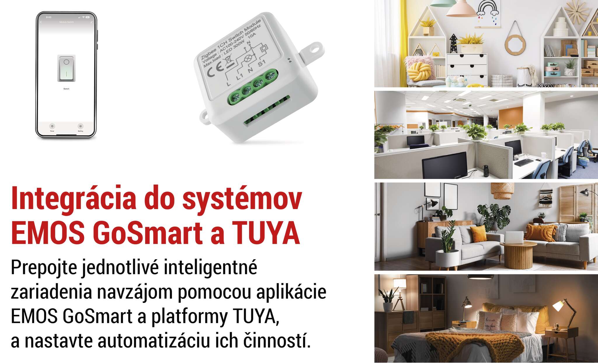 Vytvorte si vlastnú inteligentnú domácnosť s inteligentnými zariadeniami EMOS GoSmart a ďalšími zariadeniami kompatibilnými s platformou TUYA. Pripojte jednotlivé produkty, nastavte automatizáciu ich činností a ovládajte ich na diaľku pomocou plne lokalizovanej a intuitívnej mobilnej aplikácie.
