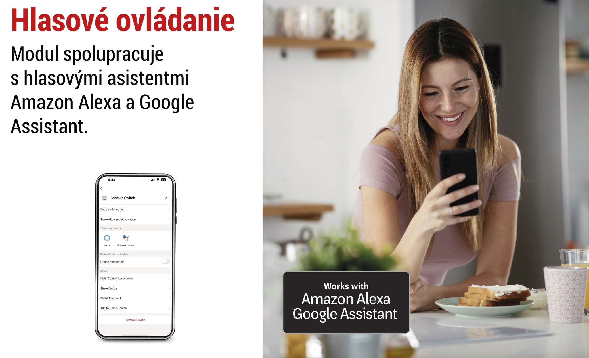 - Kompatibilná s hlasovými asistentmi Google Assistant a Amazon Alexa