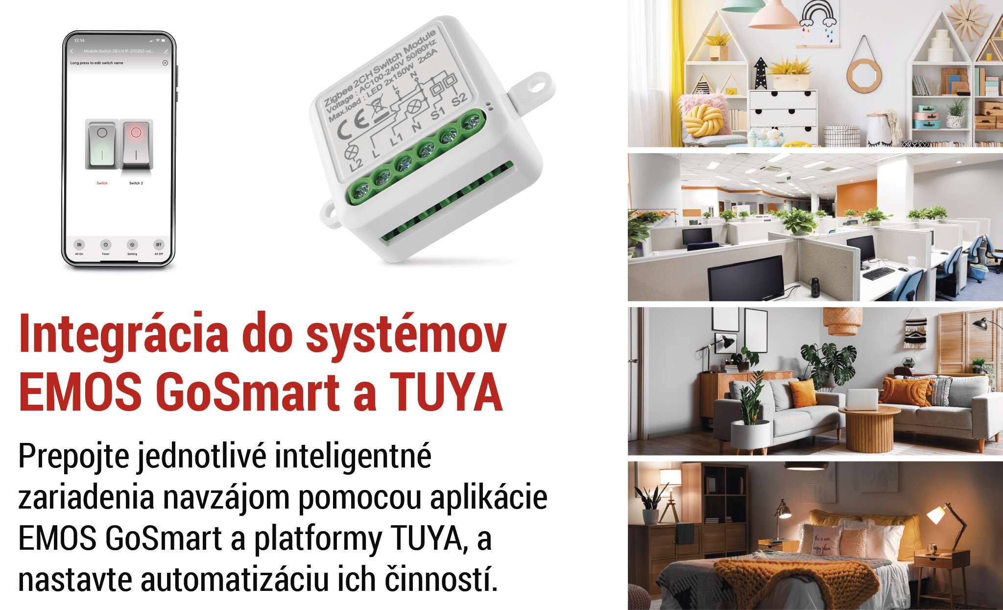 Modul ovládajte pomocou brány ZigBee a spárujte ho s mobilnou aplikáciou EMOS GoSmart, ktorá je k dispozícii pre Android a iOS. Keďže moduly sú trvalo napájané, fungujú aj ako rozšírenie vášho ZigBee signálu, čo vám umožní spravovať stále väčší počet ZigBee zariadení v jednej sieti.