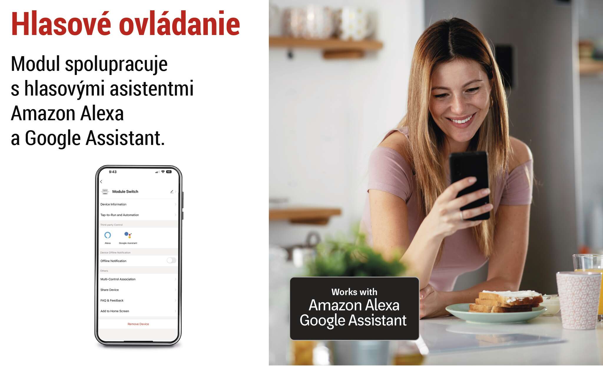 - Kompatibilný s hlasovými asistentmi Google Assistant a Amazon Alexa