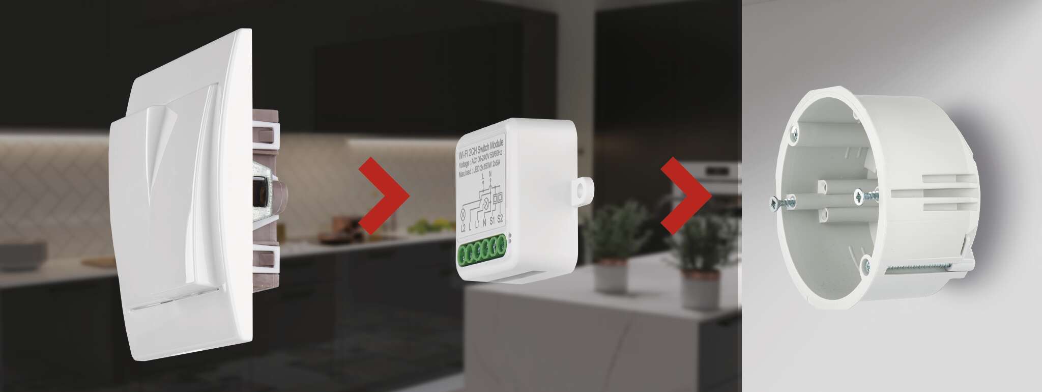 Malé rozmery a veľký účinok. To sú naše spínacie a stmievacie moduly, ktoré vám umožňujú ovládať osvetlenie vo vašej domácnosti pomocou mobilnej aplikácie. Môžete tak nastaviť intenzitu svetiel a napríklad aj čas ich zapnutia alebo vypnutia.