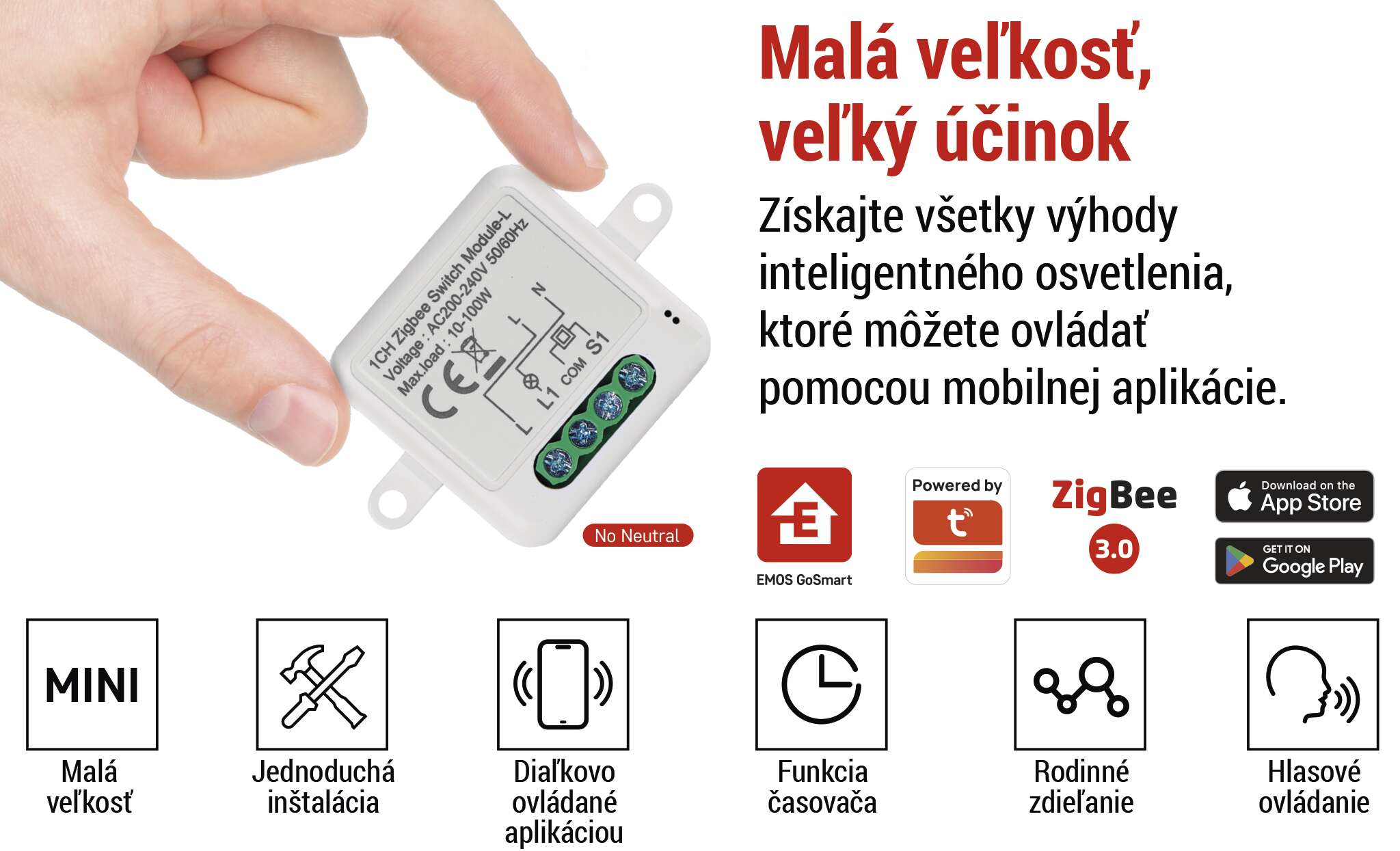 Pripojte modul k bráne ZigBee a spárujte ho s mobilnou aplikáciou EMOS GoSmart, ktorá je k dispozícii pre Android a iOS. Keďže moduly sú trvalo napájané, fungujú aj ako rozšírenie signálu Zigbee, čo vám umožňuje spravovať čoraz väčší počet zariadení ZigBee v jednej sieti.