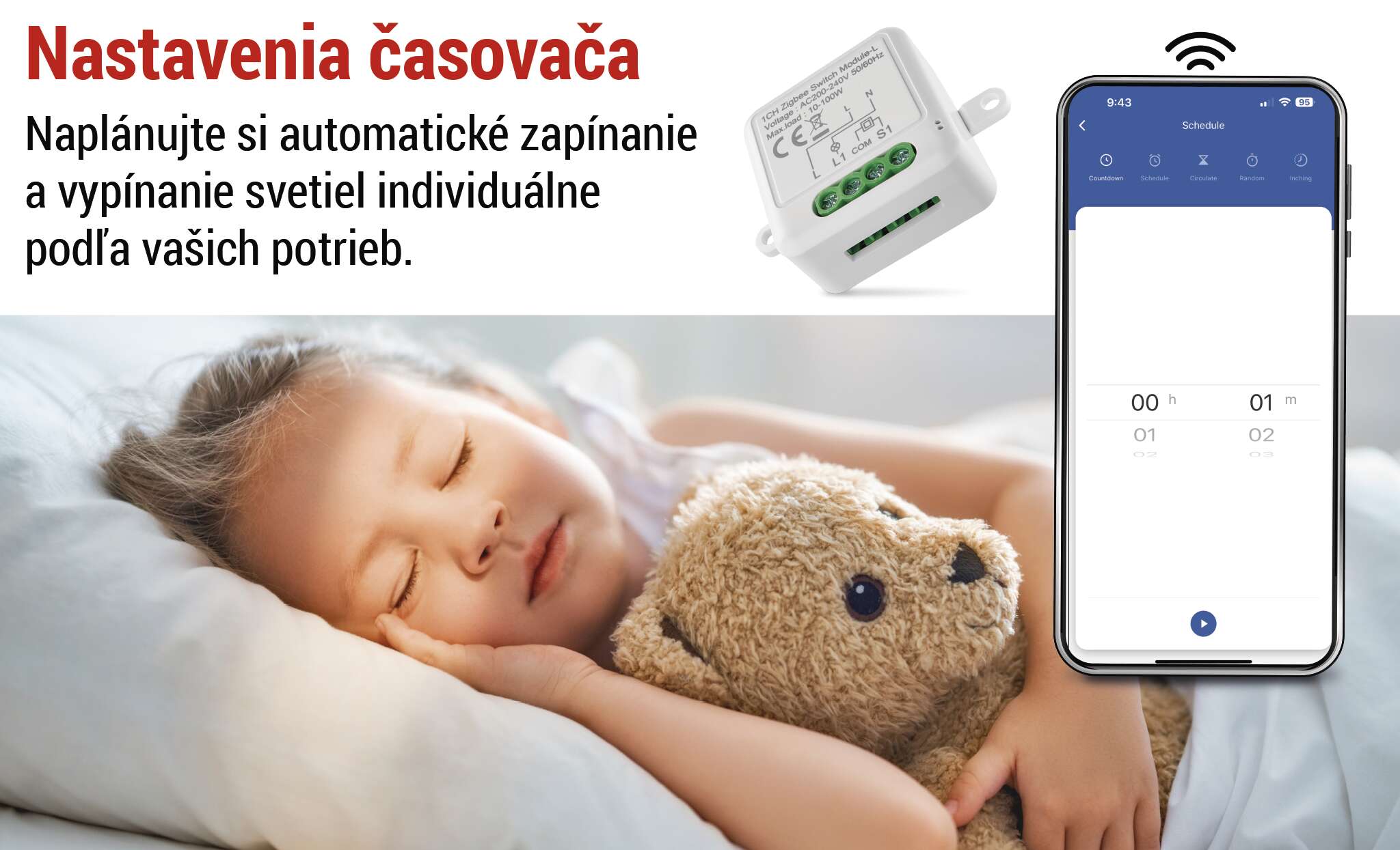 - Párovanie a ovládanie modulu pomocou vlastnej aplikácie prostredníctvom brány Zigbee (nie je súčasťou dodávky)