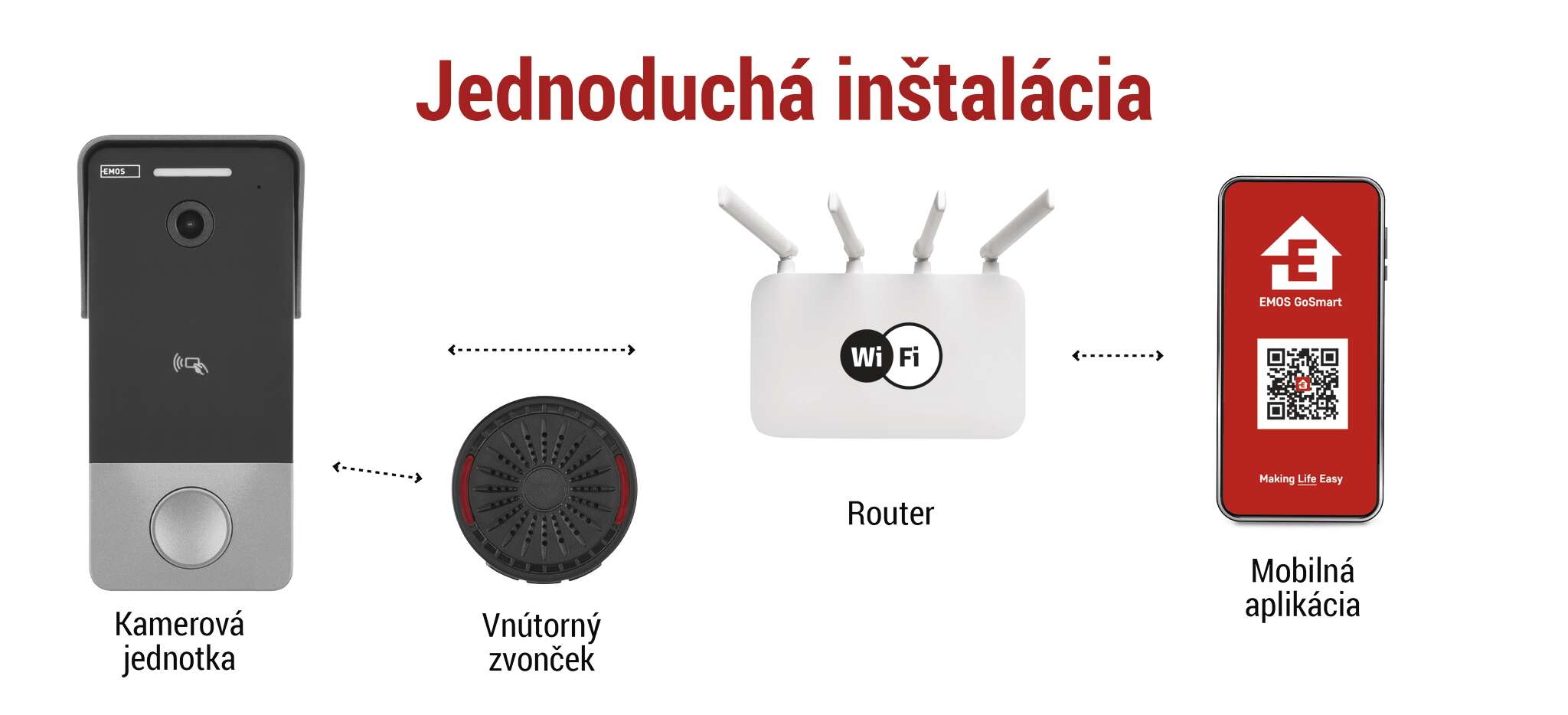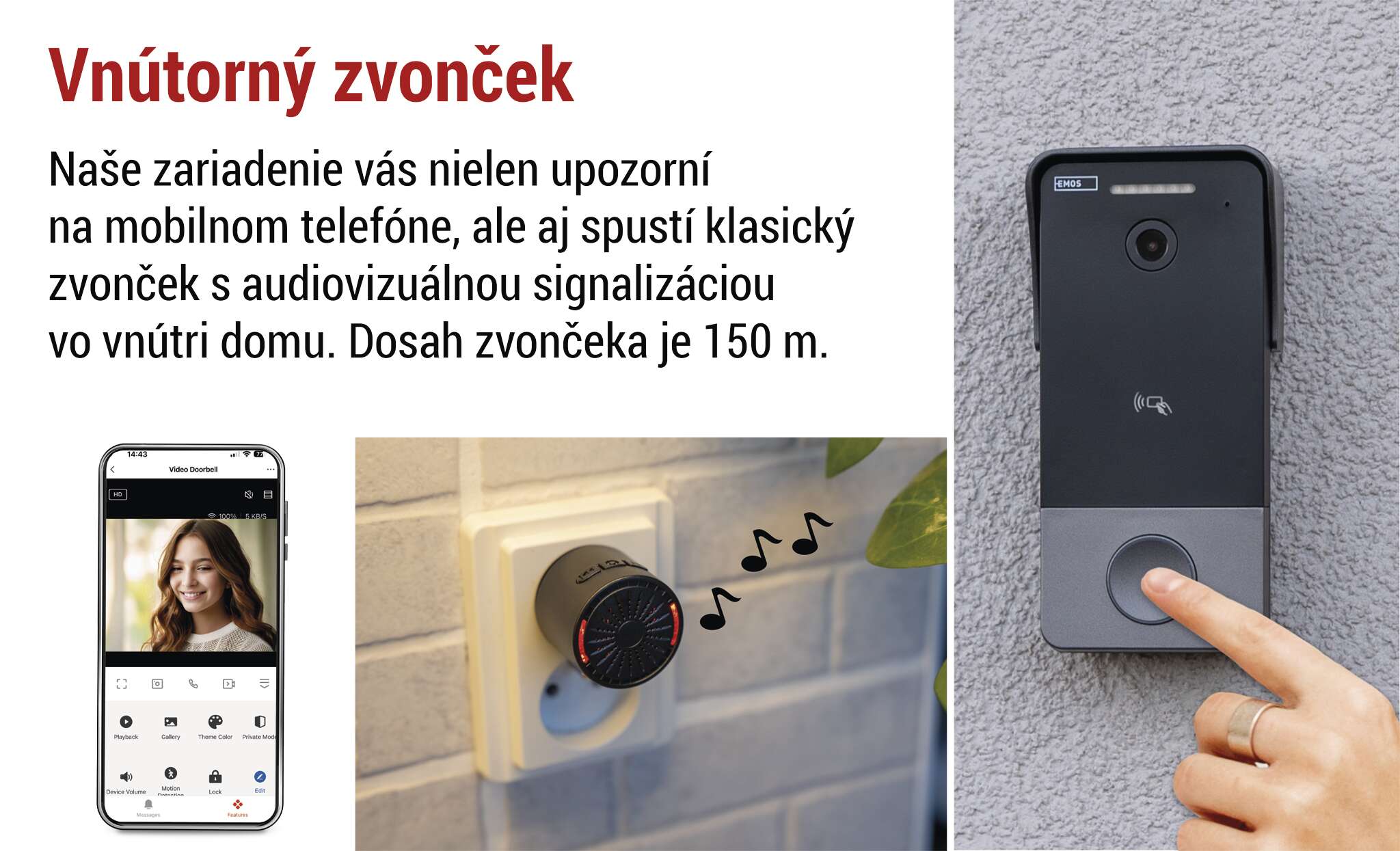 Prenos dát cez Wi-Fi – veľmi malý dosah signálu kvôli kovovému telu videozvončeka (15-20 m v otvorenom priestore)