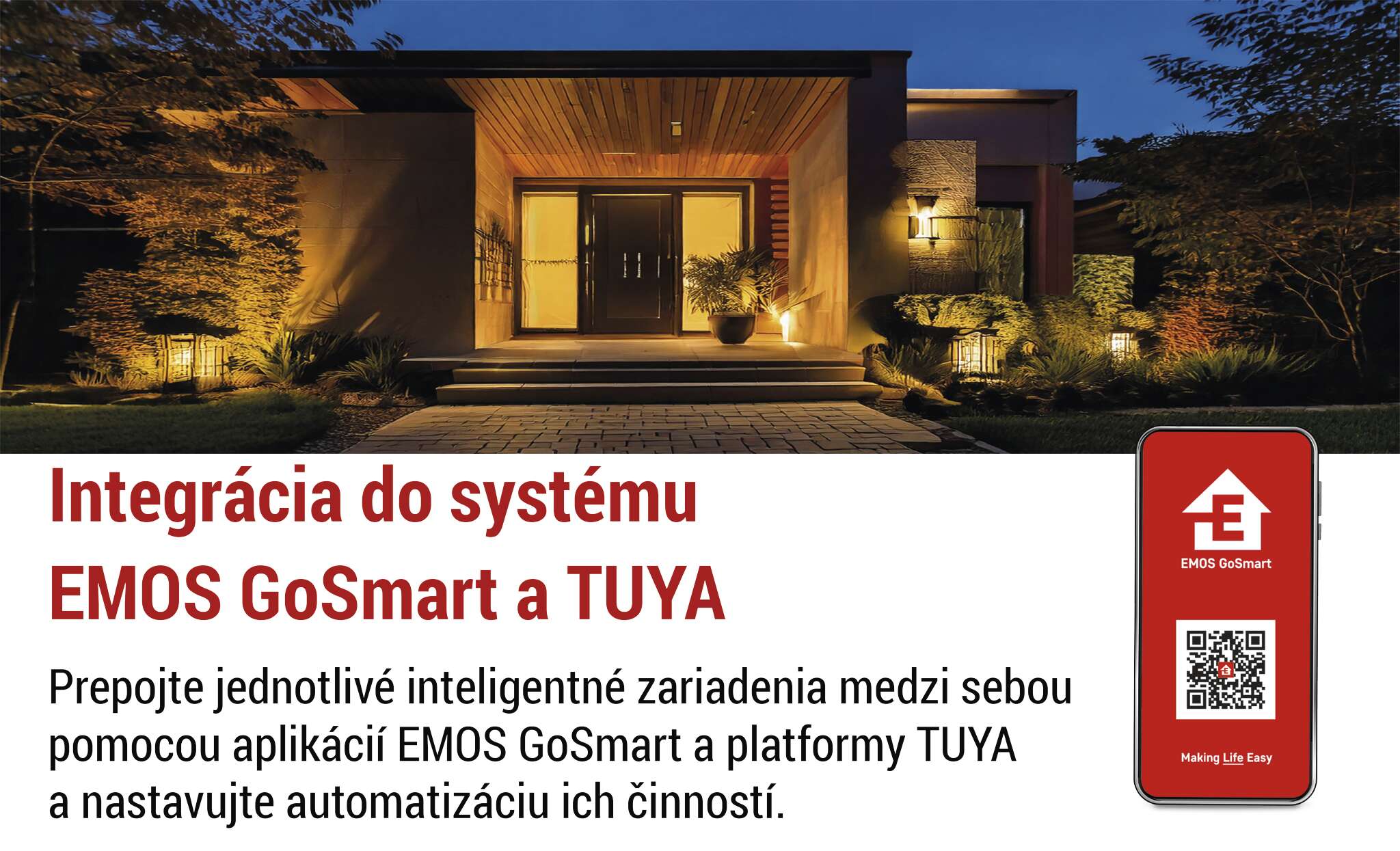 Vytvorte si vlastnú inteligentnú domácnosť s EMOS GoSmart a ďalšími inteligentnými zariadeniami kompatibilnými s TUYA. Pripojte jednotlivé produkty, nastavte automatizáciu ich činností a ovládajte ich na diaľku pomocou plne lokalizovanej a intuitívnej mobilnej aplikácie.