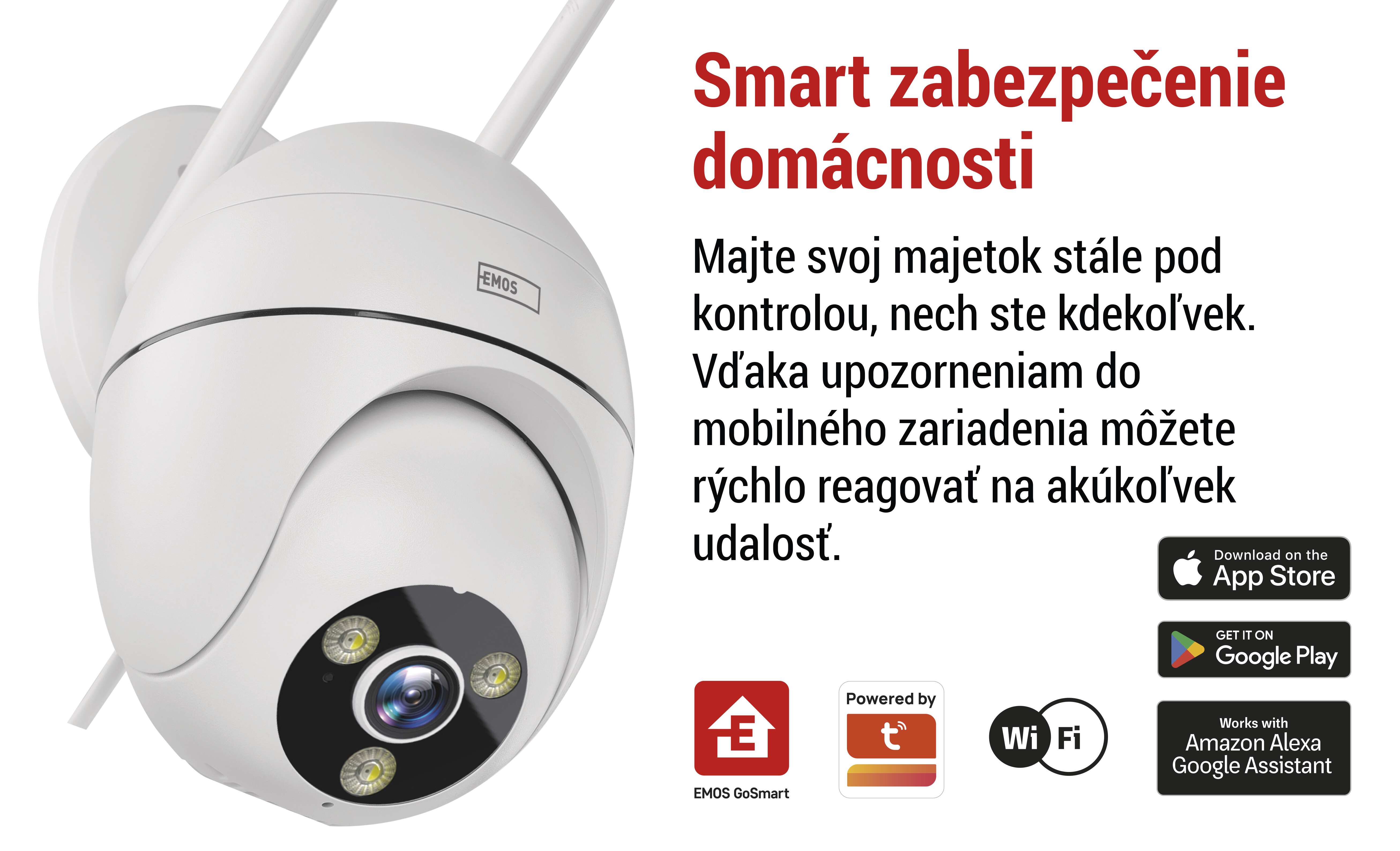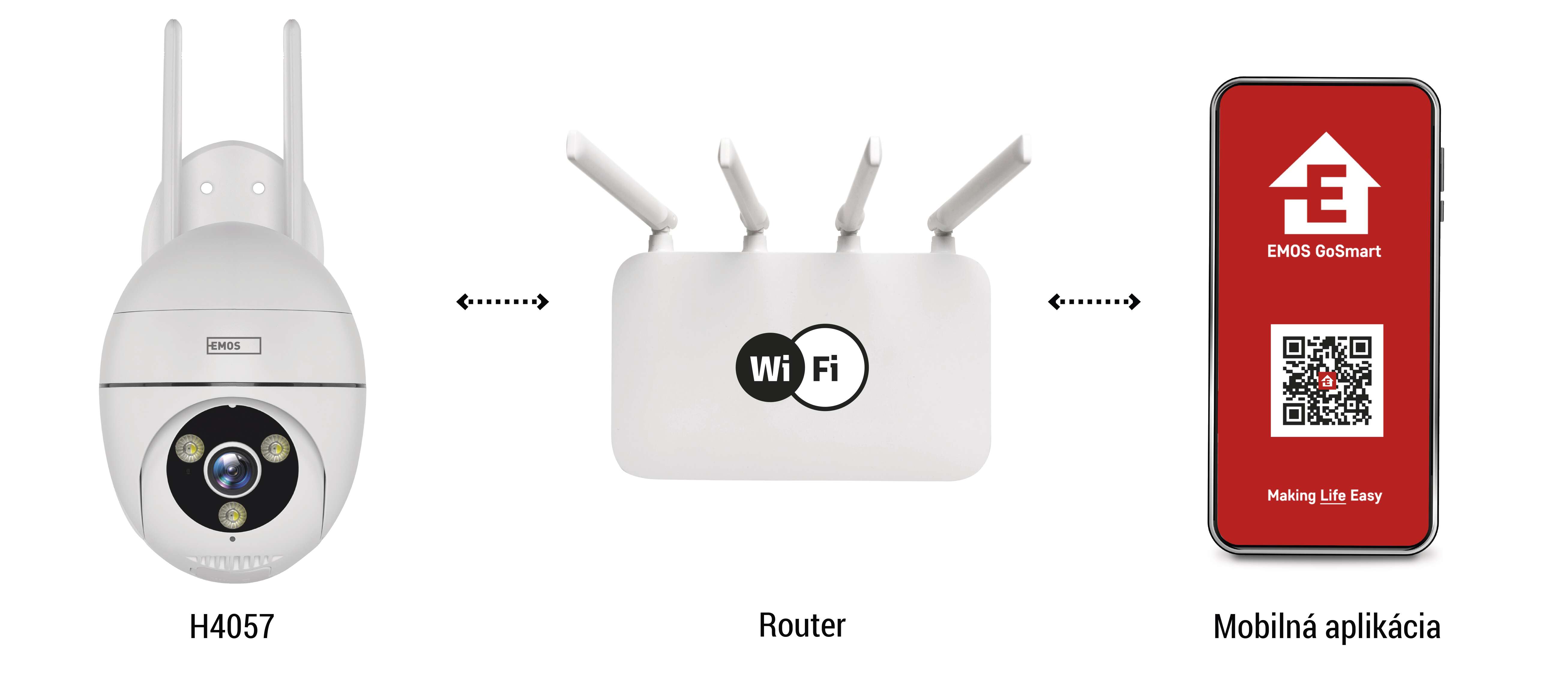 Ak je kamera vybavená technológiou Wi-Fi, stačí ju pripojiť k sieti Wi-Fi a spárovať ju s mobilnou aplikáciou EMOS GoSmart. Svoju domácnosť, chatu alebo firemné priestory potom môžete sledovať na mobilnom zariadení kedykoľvek a kdekoľvek.