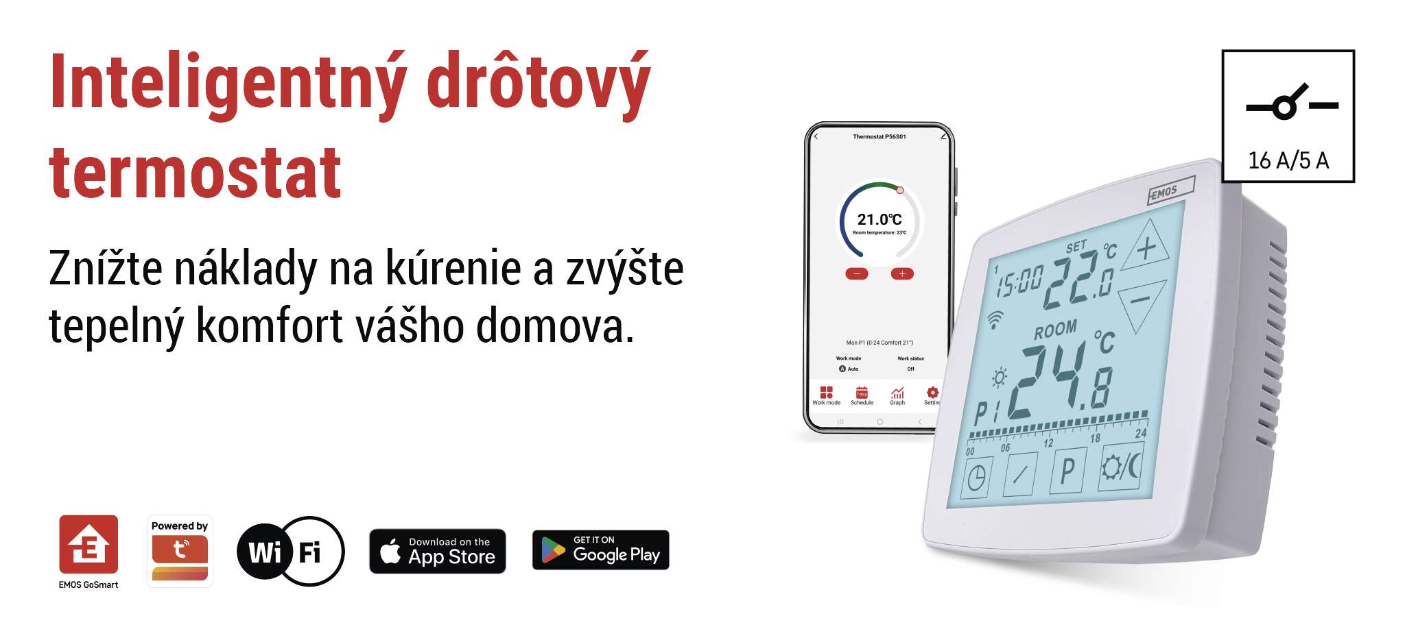 Chytrý Bezdrôtový termostat s podlahovým senzorom P56S01 z radu EMOS GoSmart vám pomôže udržiavať ideálnu teplotu, šetriť energiu a zároveň si užívať maximálne pohodlie. Vďaka pokročilej technológii OpenTherm automaticky optimalizuje vykurovanie a chladenie podľa aktuálnych podmienok, čím zabezpečuje efektívnu prevádzku bez zbytočných strát. Ak k tomu pridáte inteligentné funkcie – ovládanie polohy pomocou GPS, plánovanie teplotných scenárov, ovládanie pomocou aplikácie odkiaľkoľvek a podporu aplikácií Google Assistant a Amazon Alexa – získate skutočne inteligentné centrum riadenia klímy pre váš domov. Vďaka modernému dizajnu, vytvorenému exkluzívne pre spoločnosť EMOS, je termostat nielen praktický, ale aj štýlový doplnok každého interiéru.