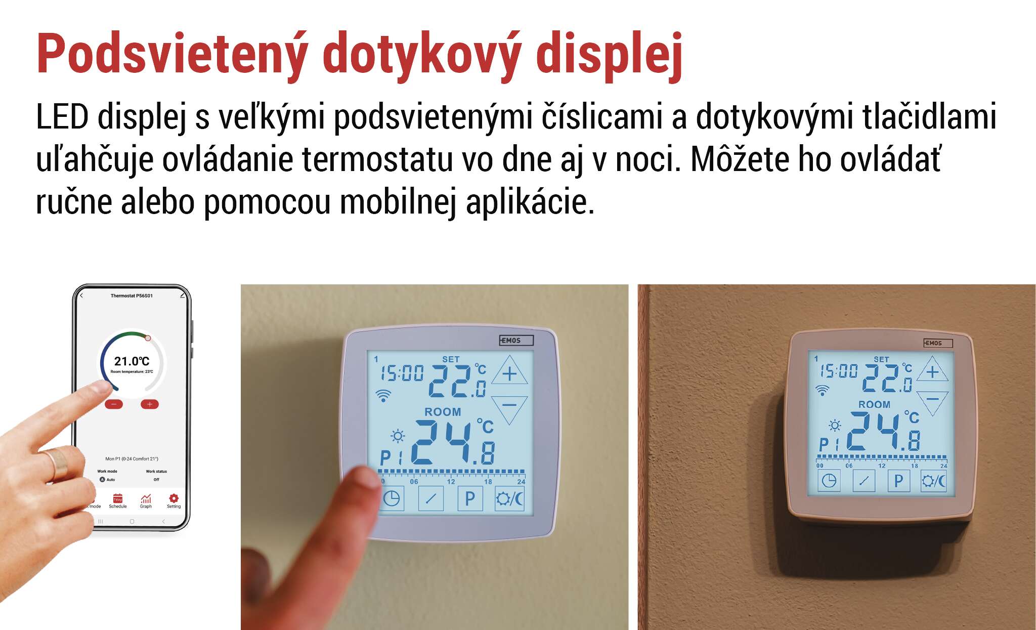 Termostat P56S01 spája praktickú funkčnosť s moderným, nadčasovým dizajnom, ktorý sa hodí do každého interiéru.Podsvietený dotykový displej je prehľadný a intuitívny – veľké číslice uľahčujú zobrazenie aktuálnej a nastavenej teploty a vďaka podsvieteniu sa pohodlne ovláda aj v noci bez zapínania svetla. Termostat navyše podporuje služby Amazon Alexa a Google Assistant, takže ho môžete ovládať hlasovými príkazmi.