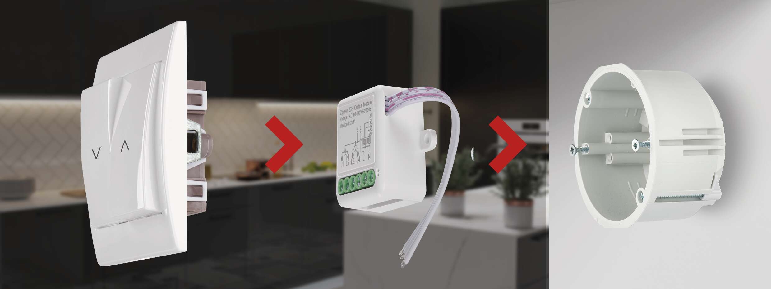 - Na voljo so tudi moduli stikal, zatemnilnikov in garažnih modulov