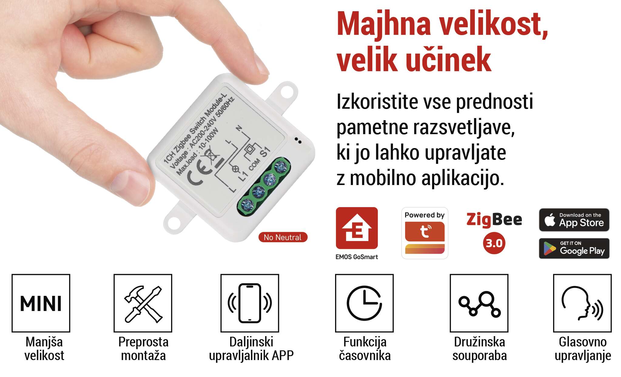 Modul priključite na prehod ZigBee in ga spremite z mobilno aplikacijo EMOS GoSmart, ki je na voljo za Android in iOS. Ker so moduli stalno napajani, delujejo tudi kot razširjevalnik signala Zigbee, kar vam omogoča upravljanje vedno večjega števila naprav ZigBee v enem omrežju.