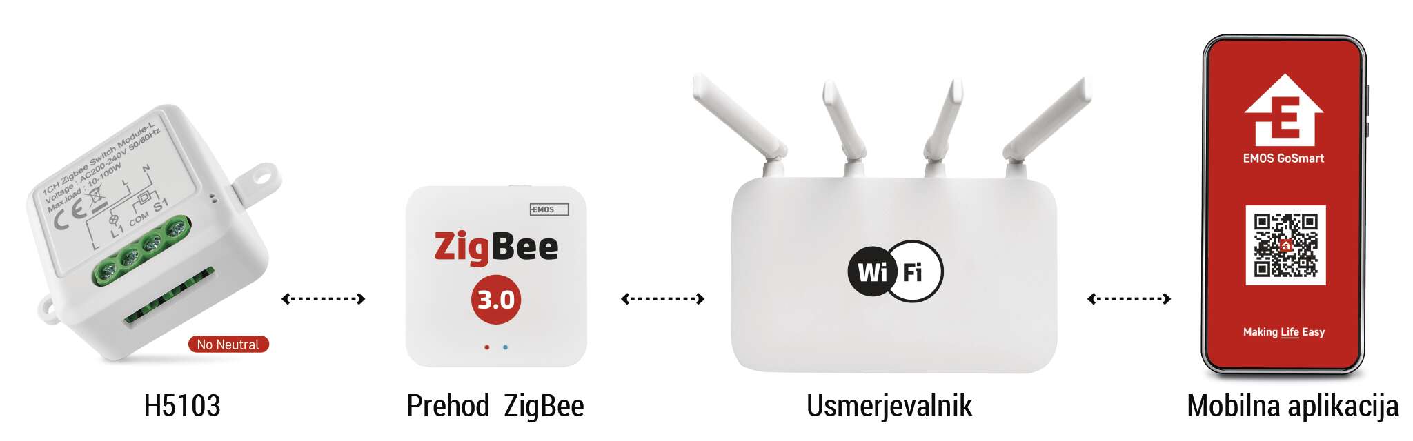 - Priključitev in upravljanje modula z uporabo lastne aplikacije prek prehoda Zigbee (ni vključen)