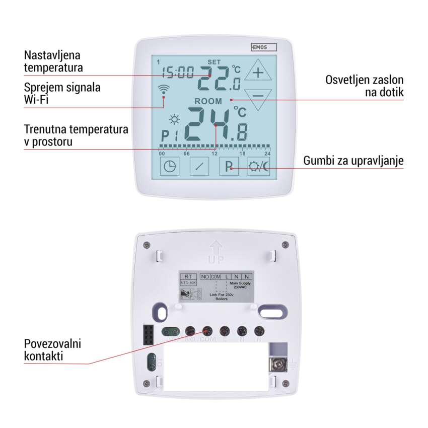 | tip upravljanja | programski elektronski sobni termostat, možnost upravljanja preko mobilnega telefona (iOS, Android) |